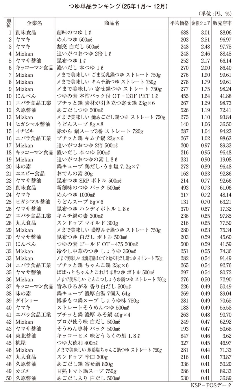 つゆ特集:創味食品 小容量タイプ堅調維持