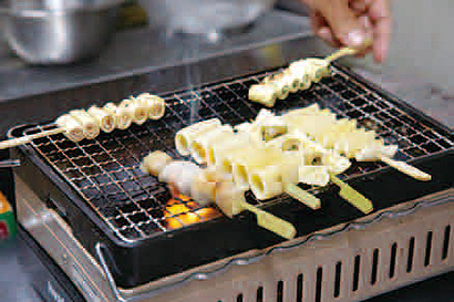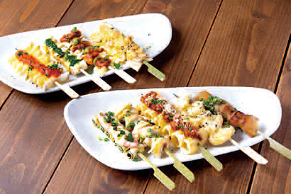 ワケありの盛り付け:パスタの新スタイル 食べ比べできる串焼き提案