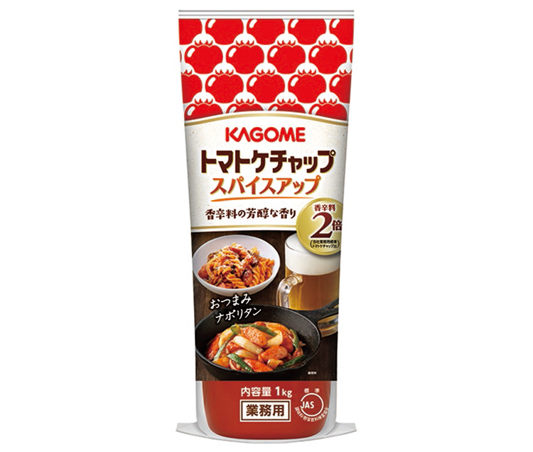 従来のトマトケチャップと比べて2倍※の香辛料を加えた、味わいに厚みとコクを付与するトマトケチャップ。赤色の強いトマトを使用しており、料理が鮮やかな色合いに仕上がる。