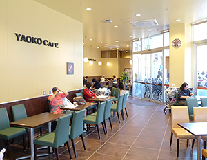 ヤオコーは、11月26日開店の平塚宮松町店(神奈川県)でイートインコーナーのスペースを大きく確保し、コーナーに関連した商品も開発した。50~60席ほども設けたイートインコーナーを主通路から分岐して配置し、売場とは別のスペースで落ち着いて食事ができる形にした。今後、ケーキ店がテナントで入り、オープン時の3分の2ほどになるが、他店よりも広いスペースで展開する。商品も店内焼きたてのピザのほか、新しくランチやディナー、ティーセットなどメニュー開発し、ピザカウンターで注文を受ける。通常の売場でもイートインで食べることを想定して商品開発し、惣菜では見栄えもする「カップちらし」など新商品も投入した。サービスでは公衆無線LANのWiFi(ワイファイ)も利用できる。