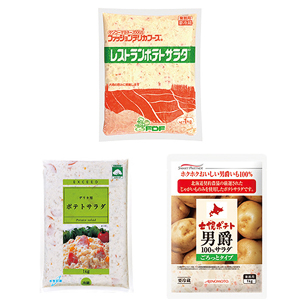 ちくわにポテトサラダを詰めてフライにした「ちくわサラダ」は熊本県のソウルフード的な惣菜として全国に広まっており、使用事例が増えている。また、ポテトサラダを牛乳、コンソメ、生クリームと合わせ冷製スープ仕立てのうどんスープにした新感覚うどんといったメニューも誕生。ポテトサラダの素材活用に注目が高まっている。