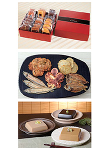 〈惣菜・調味料・飲み物部門〉▽店名=日乃本食産▽製品=純国産胡麻豆腐(同(下))▽概要=喜界産白ごま、丹波産黒ごま、播磨産金ごまをそれぞれ使用したごま豆腐で、3種共に創業450年の老舗「森野吉野葛本舗」のヒネ葛を使用