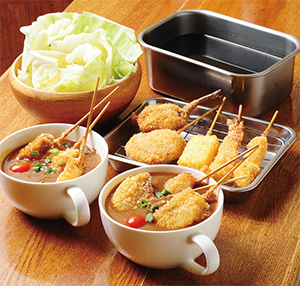 ソースはカップに入れられて提供されるが、残ったソースに別に注文した串揚げを付けて食べたり、カップでそのまま飲み干す客も多い。串揚げを揚げ物用のソースに付けてからカレーに付けて食べる客もおり、客が自在に味の変化を楽しんでいる。また、客からの要望で、追い足し用の「カレーソース」(100円)も単品で登場するなどカレーソースの人気は高まるばかりだ。