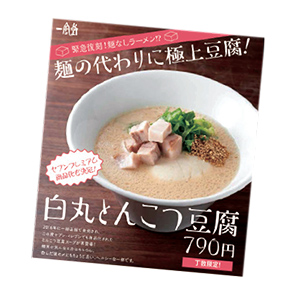 もともと同品は昨年、期間限定メニューとして、東京、福岡の3店舗で試験的に提供したが、販売直後から問い合わせが殺到。この好評を受け、今年3月からは東京、熊本など4店で本格的にメニュー導入した。売れ行きは好調で「一風堂ルミネエスト新宿店(ニブンノイップウドウ)」の例では、ラーメン各品の日販は平日300~400食、土日500食に対し、「白丸とんこつ豆腐」は限定20食を毎日ほぼ完売。10月からは関東、東海地方を中心に39店で提供を開始している(期間限定)。