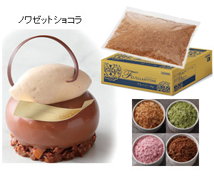 フランス伝統の薄焼き菓子。サクサクとした軽い食感に焼き上げた生地を、使いやすいフレーク状にしました。バニラ風味が強い輸入品に比べ、日本人の口に合うナチュラルな風味が特徴です。クチナシから抽出した色素で仕上げたピンク、ココアのブラウン、抹茶のグリーンなど、豊富なカラー&バリエーションで季節や催事に合わせた商品作りをサポートします。鮮やかな色味はSNS映えすること間違いなし!常温で270日間保存できる利便性も好評です。