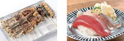 看板メニューは、寿司とアナゴ料理。畑営業部長いわく「“ごちそうが食べられる酒場”のイメージから、ごちそうといえば、やはり寿司でしょう」。アナゴは、「頭からしっぽまで使え、焼きや煮アナゴ、天ぷら、あえ物など食べ方も多彩。高タンパク、低カロリーで、まさに活力源になる。他の大衆酒場との差別化をアピールできる食材です」と、畑営業部長は自信を示す。もちろん、ポテトサラダ(390円)、牛すじ豆腐(590円)、ハムカツ(390円)、牛出汁おでん(150円~)といった、大衆酒場ならではのメニューも揃う。