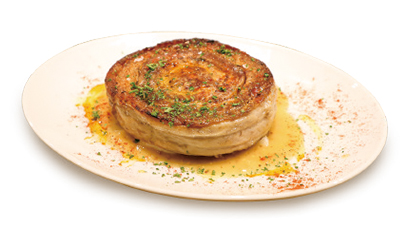 提供されるメニューは炭火で調理した豚タンやハンバーグ、ソーセージなどの「原始焼き」のほか、イベリコ豚ばら肉をハーブとスパイスを利かせてロールしたイタリア名物の「ポルケッタ」、スペインのローカルフード「エストレジャードス」など、東京に数あるイタリア料理店、スペイン料理店でもあまり見かけない、ちょっと珍しいヨーロッパの郷土料理が並ぶ。
