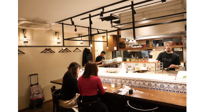 1月にオープンした「囲炉裏バル カルボ」は、客席の前のオープンキッチンで、食材を炭火で焼き、提供するという、バルとしては珍しい炉端焼きスタイルの店。たき火で食材を焼く「原始焼き」の料理は世界中で親しまれているが、これを日本の「炉端焼き」ではなく、スパニッシュイタリアンのバル業態で提供するというのが、同店のコンセプトだ。
