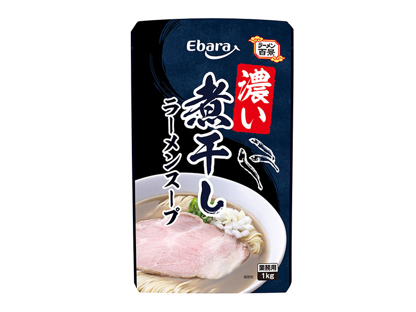 煮干しエキスと煮干し粉末をふんだんに使用し、煮干しのうまみと風味をしっかりと引き出した濃厚ラーメンスープ。湯で割るだけで、専門店の濃厚な煮干しラーメンの味わいが完成する。おいしさだけを引き出した臭みのない濃い煮干し感が特徴的で、炊き込みご飯の調味やサイドメニューの隠し味にも活用できる。