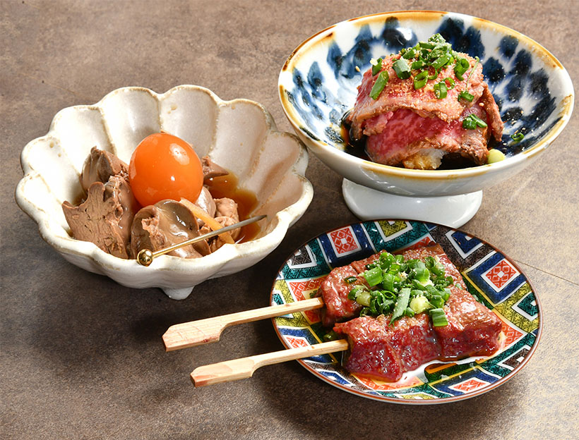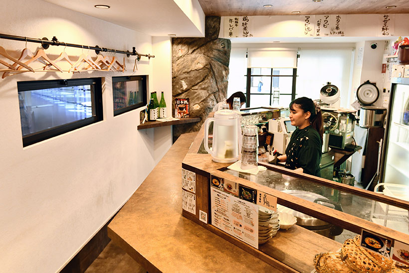 夜は立ち飲みで営業。取材時の日本酒ラインアップは35種類で、1週間で入れ替える充実の品揃え。アテに、多様な肝料理を味わえるのも珍しい。「レバーや魚介の肝は日本酒に合う。ニーズに合わせて少量ずつ立ち飲み価格で提供し、プチ贅沢を感じてほしい」と、肝料理を推す狙いを語る。