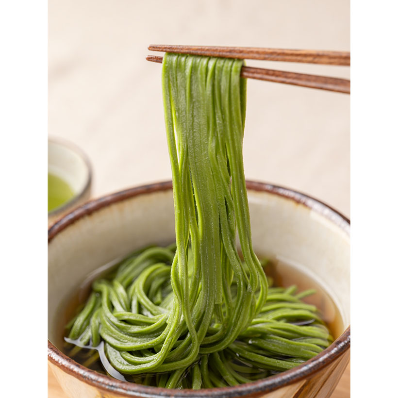 抹茶の風味を練り込んだ祇園辻利の新商品「抹茶うどん」