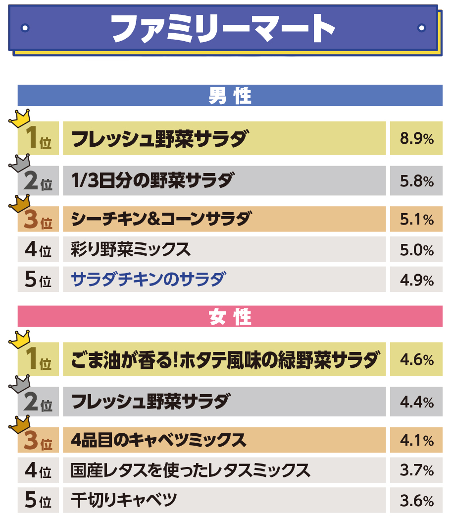 1位 洗わずそのまま食べられるミックスサラダ 10.6%