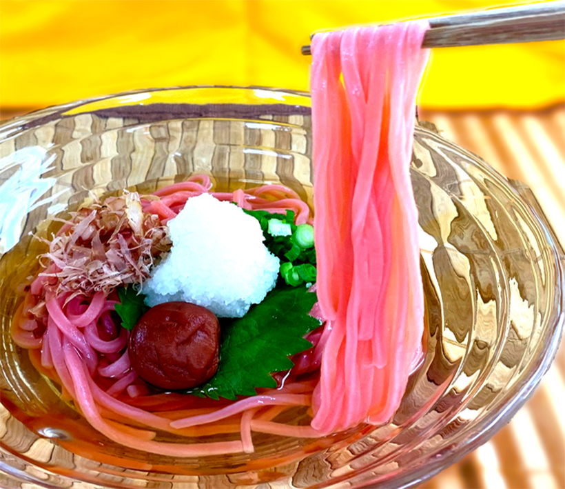 ●色鮮やかで上品な梅のうどん ほのかに香る梅が上品