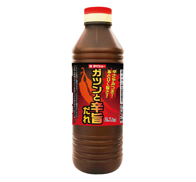 ニンニクと唐辛子をガツンと利かせた激辛のたれ。醤油に、味噌やコチュジャンのうまみとごま油の風味を加え、辛さの中にコク深さを引き立たせた。材料に対し20~30%分量をからめるか、上からかけて使用できる。