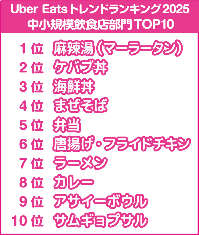Uber Eats トレンドランキング2025 中小規模飲食店部門TOP10