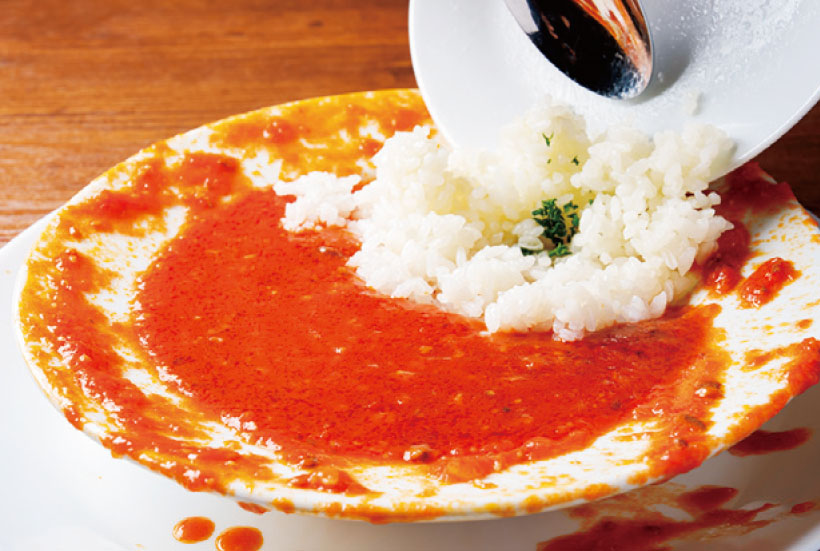 高い支持を支える肝となるのがトマトソースのクオリティー。「スープではない」と胸を張るに納得の濃厚さで、トマトのうまみを存分に堪能できる。