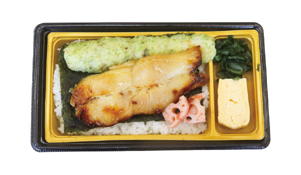 魚切り身の厚切り具合が頼もしい、魚の魅力をメインに構成された「お魚屋さんの弁当」。肉弁当や幕の内タイプの弁当が主流の今、惣菜弁当における魚復権を期待させる。