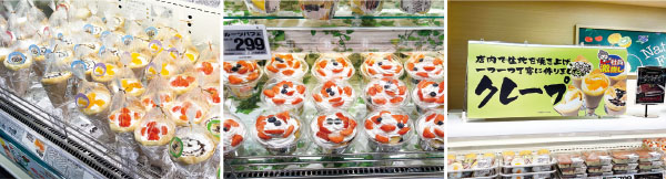 「SMのスイーツは地味で物足りない、という印象がある。それを払拭するため『SMならではの本格スイーツ』を目指した。SMのスイーツはまだ伸びしろがある」と茂木部長。ベイシアではパフェはフルーツの魅力を知り尽くした青果部が手掛け、クレープは惣菜部門が生地から店内で焼き、売場に並べている。従来のSMのスイーツを超えた“ごほうび感”が光る。