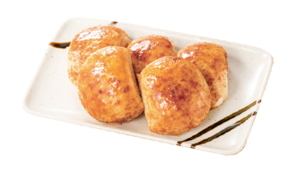 蒸したまんじゅうの生地を焼き、甘辛い味噌を絡めた一品。店内で串に刺して焼き上げており、香ばしさが引き立つ。
