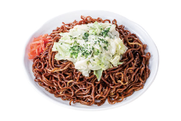 地元の名店から伝授したオリジナルの真っ黒濃厚ソースにもちもち麺がよく絡む、上州ならではの焼きそば。