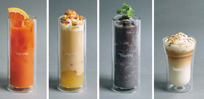 見た目や食感も楽しめるドリンクを用意しており、トレンド感満載のドリンク体験が味わえる。写真左から、「ノムオレンジ」(700円、以下すべて税込み)、「デラックスノムアップルパイ」(700円)、「フローズンコンクリートミキサー」(900円)、「ラテロワイヤル~トリュフハニー 仕立て~」(700円)