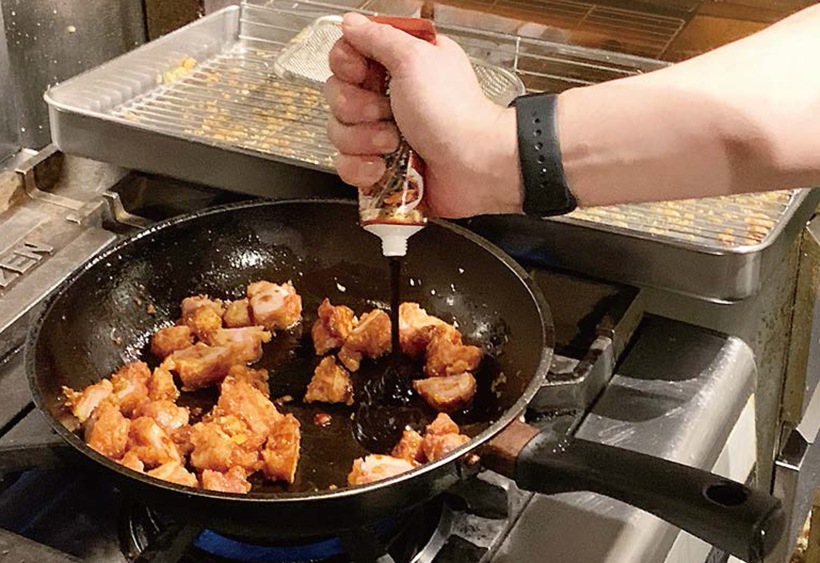 北海道・小樽の名物料理「若鶏半身揚げ」などザンギ(唐揚げ)商品を充実させ、ランチ、弁当テイクアウト、居酒屋と多彩な販売チャネルで支持されている同店。現在はセントラルキッチン(CK)を開設し、直営とフランチャイズ合わせて20店に主力商材を提供する体制を整えている。今回は同CK責任者の斎藤貴志さんが、五反田本店料理長時代にスタッフからの要望が多かった「鶏麻婆豆腐」を紹介する。