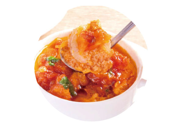 あらゆるトマトメニューに適用するソースを目指して開発。トマトのうまみと赤い色味を前面に表現し、味に加えて仕上がりの見栄えにも貢献する。ニンニク不配合かつスパイスも控えめにすることで、料理人の創意を反映しやすい調味設計となっている。