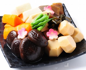 素材はすべて国産。メーンとなるコンニャク、椎茸、ニンジン、こうや豆腐、昆布、里芋をはじめ、正月にはゴボウやレンコン、春先にはタケノコなどと旬の新鮮なものを使用する。調理方法は次の通り。