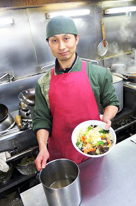 河内店長は2011年、ジュニア野菜ソムリエを取得。野菜満載の冷しタンメンも、野菜ソムリエの資格を持つ河内店長ならではの発想が光るオリジナルメニューだ。