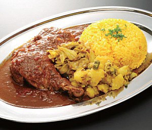 1950年創業のインド料理店の超の字が付く看板商品が「ムルギーランチ」だ。本格インド料理も揃えたうちで、ダントツの人気メニューとなっており、昼時には90%以上のお客がこれを注文するという。鶏もも肉を丸ごと1本、長時間じっくりと煮込んだものに、2~3種類の野菜のザブジ、ターメリックライスを1皿に盛り付けたボリュームも満点の商品だ。