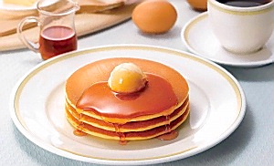 さらに販売促進の一環として「おいしい食べ方」を提唱し、テーブルマットに掲載するなどの試みも行った。その食べ方とは、まず、(1)パンケーキ1枚1枚にパンケーキホイップ(ホイップバター)を塗り、(2)パンケーキを再び重ね、重ねたまま十文字にナイフを入れる。(3)さらにナイフを入れ8等分し、(4)メープルシロップを上からまんべんなくかけ、(5)1ブロックを3枚まとめて食べる、といったもので、現在でもこの食べ方にこだわる常連客も少なくない。