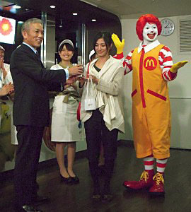 「レギュラーコーヒー市場では年間(08年度)2億6000万杯のセールスでナンバーワンのシェアを獲得している。スペシャリティーコーヒー市場は年々8%成長している有望な市場で、こちらでもやるからには一番を取りたい」と、日本マクドナルド原田泳幸会長兼社長はコーヒーセールスへの並々ならぬ意気込みを述べた。