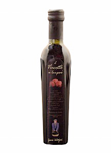 ビンコットとは、樹上で果実がしぼむまで熟させたブドウを5分の1までじっくりと煮詰めたのち、オークだるで4年間熟成させてようやく出来上がるブドウソース。同商品は、さらにラズベリーを加えて煮込み、ブドウ酢を加えたビネガータイプだ。その味は、熟成させたバルサミコソースのようなまろやかな酸味ととろみがあり、ラズベリーのさわやかな風味が加えられている。