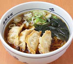 1日の出数は平均25食程度。意外にも40~60代の女性客がよく注文するとか。「そばにギョウザという意外性と蒲田店限定という珍しさが好奇心をそそるようです」と沢部さん。ギョウザは関連会社の小田急食品から調達。温かいかけそばの上に、ワカメとネギ、そして揚げギョウザを4つのせている。ギョウザはさっぱりとした風味で、意外なほどそばつゆとの相性がよい。「常時天ぷらを揚げているのでオペレーションもスムーズ。水ギョウザや焼きギョウザも試してみたが、味の面でも揚げギョウザが勝っていた」というように、カラッと揚げることで、サクッとした食感が加わって満足度もアップ。