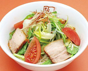 他に冷やし麺メニューとして5~9月に酸味をおさえたうま口たれの「中華風冷やしラーメン」と通年販売でカツオだしの効いた「和風冷やしラーメン」の2種類がある。どちらも自家製の軟らか焼き豚を5枚のせ、満足度十分だ。