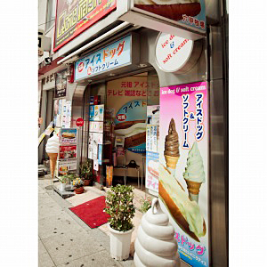 西の原宿と称される大阪ミナミのアメリカ村を歩くと、白いものを挟んだコッペパンを頬張る若者にあちらこちらで出くわす。ソーセージの代わりにソフトクリームを挟んだ、ホットドッグならぬ「アイスドッグ」だ。国内はもとより海外のメディアにも紹介され、アメリカ村の名物としてすっかり定着しているこのスイーツ。ユニークな発想と類似品をものともしない元祖ならではの味の秘密を探ってみた。