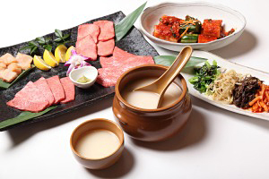 昨年夏ごろ、梁川俊雄社長が「おいしい生マッコリがある」と聞きつけ、かめに商事に問い合わせたのがきっかけ。「韓国のマッコリは地域によって、特徴がありますが、日本で手に入るのは、甘味の強いものばかり。『チェジュ生マッコリ』の辛口でフレッシュな味わいに魅せられ、すぐに切り替えました」(梁川博実部長)。ドライでキレのあるマッコリの方が料理も杯も進む。「注文数が増え、売上げアップにつながっています」(前同)