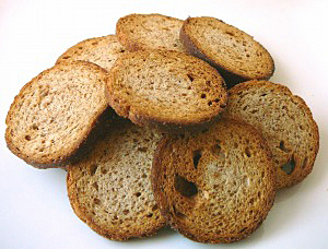 メルバ・トーストは、色、テクスチャー、フレーバーすべてでちょうどよく、油をあまり吸わず、パリッと香ばしく揚がる。