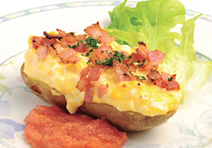 ジャガ芋にはブロッコリーやミックスベジタブルなどの野菜をのせて作るのもよい。