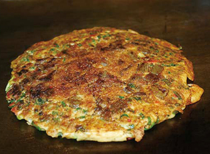 学校から帰った子どもたちに、水で溶いた小麦粉にネギをたっぷりのせたものを焼き、カウンターの端で食べさせていた。「気分良く店の手伝いをするように、工夫して食べさせてました。いわゆるまかないですな」と、長男で現社長の山本美徳さんは振り返る。それを客が見て、「おいしそう」と注文が入るようになり、次第に「ねぎたっぷりのお好み焼き」がメニューに加わり、3年後には「ねぎ焼」として名物になっていた。