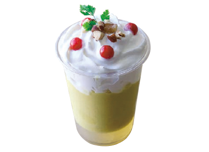 ジェル状の和だし、各種食材を裏ごししてだしと合わせたすりながし、豆乳エスプーマの3層仕立てで、アクセントとなる食材をぱらぱらとトッピング。トロッとしたシェイクを思わせる食感の冷製ドリンクで、見た目の甘いイメージとは異なり、和だしの味わいが口に広がるちょっとした驚きがまた楽しい。その味わいは本格派で、注文が入ってから1杯1杯丁寧に作っている。