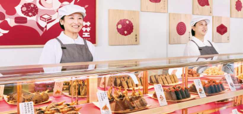 「サザエ」は北海道内に59店舗を展開する“おはぎとおむすび”の専門店。1957年に函館朝市の食堂として創業以来、地元客が「ほっ」とする味作りを継承し、道民の味覚を体現するソウルフードに定着させた。一見するとありきたりだが、風土に育まれた根拠は奥深く、食べれば差別化は明確。道民から愛され続ける質実的な味わいに感心する。道産食材を尊重し、おもに百貨店や大型SCにテナント出店する、サザエの売れ筋逸品をご紹介。