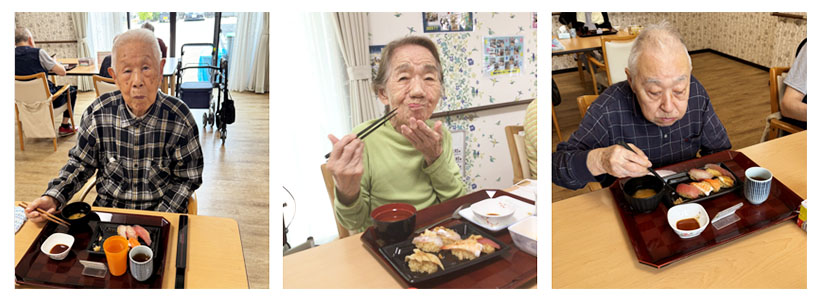 「スシローの日は外出をしないと決めている」という入居者も多いという。普段は刻み食だが「寿司は普通に食べたい」と、この日だけは通常メニューを希望する入居者や、この日だけは残さず完食するという入居者も。「スシローの日」の楽しみがあるため、転居する際にもアンジェスの別施設を希望した、という例もあったようで寿司の魅力は偉大だ