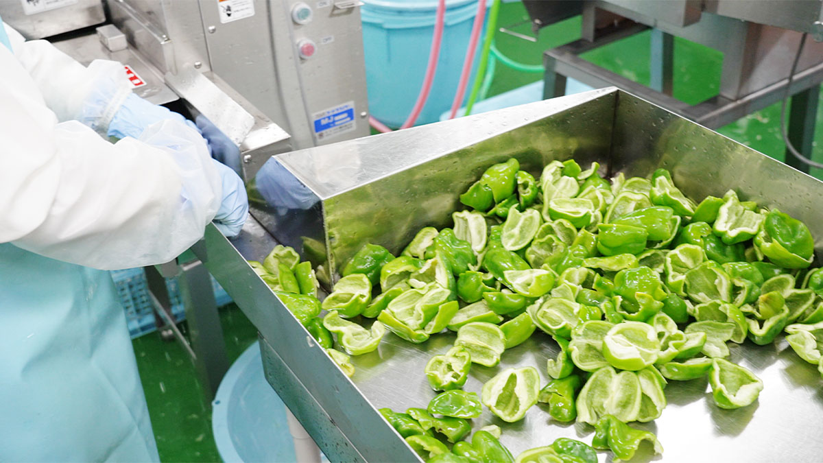そこで、まずはピーマンの殺菌工程後にBacNaviによる検査を実施した。「検査結果」「数日後の商品の状態」「培養法による微生物数」などのデータを比較する中で、「総菌数でレベル2(104~105程度cfu/㎖)以上のピーマンは、翌日以降には菌数や官能評価で変質劣化が懸念される」という状況が確認されたことから、「殺菌後にレベル0~1であれば合格、レベル2以上は再殺菌」というルールを設けた。それ以降、クレームは年1~2回に激減し、状況は見事に改善された。現時点ではこのルールを適用しているが、定期的に野菜の菌数測定などを実施し、より効果的・効率的な検査体制を模索している。