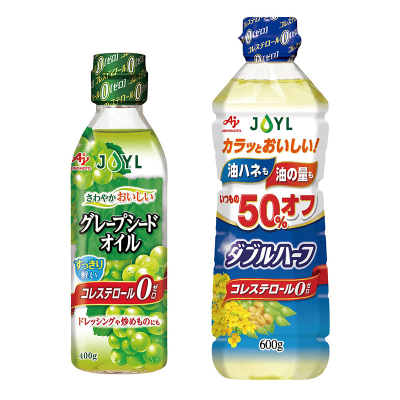 このほか、使用量をいつもの50%オフで調理できるJOYL「AJINOMOTO ダブルハーフ」、ブドウ種子由来のJOYL「AJINOMOTO グレープシードオイル」のデザインを改善。いずれも優れた特徴を分かりやすくデザインし、より手に取りやすいパッケージに改善した。